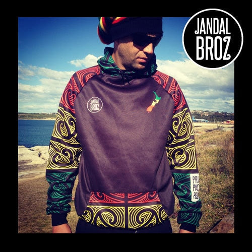 -Aotearoa Reggae hoodie Ta Moko Arms Red Yellow Green