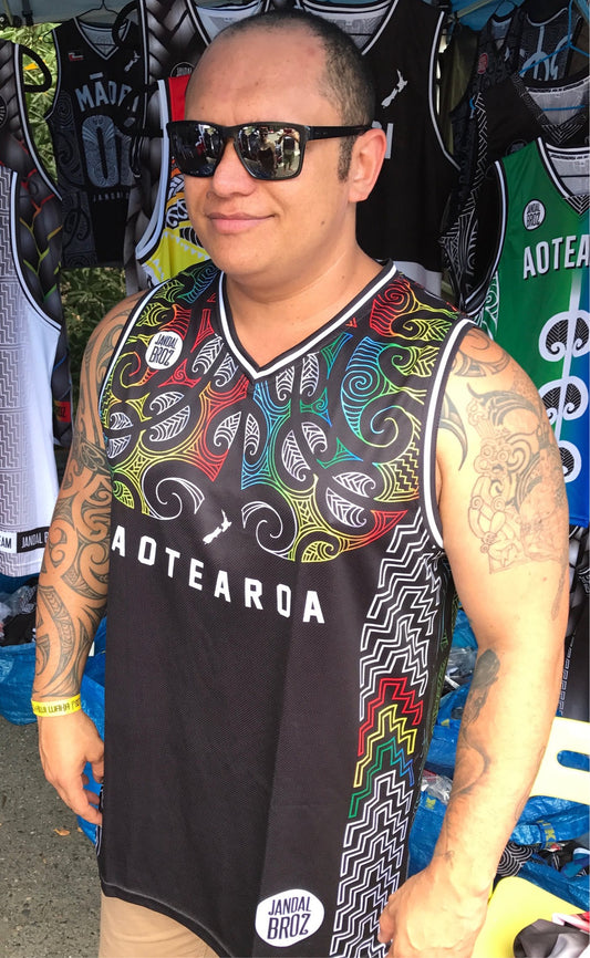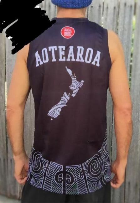 -Basketball Singlet New Zealand Harakeke Three baskets of knowledge