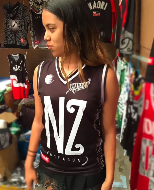 Basketball Singlet Kiwi in OZ fern- kangaroos