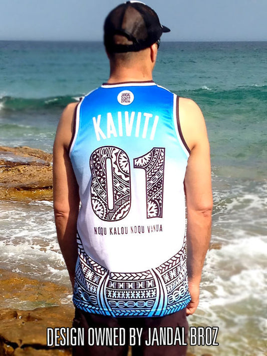 Fiji Kaiviti Vest Youth Basketball Singlet White with blue fade