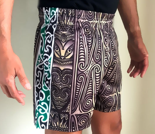 Maori Shorts Whakairo taiaha Tāne by Jandal Broz