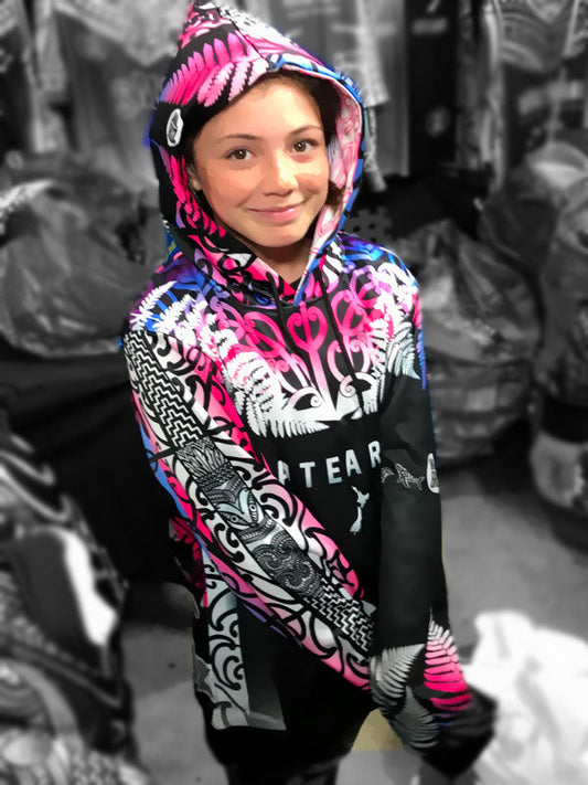 • Māori hoodie Aroha Nui whakarongo pink purple