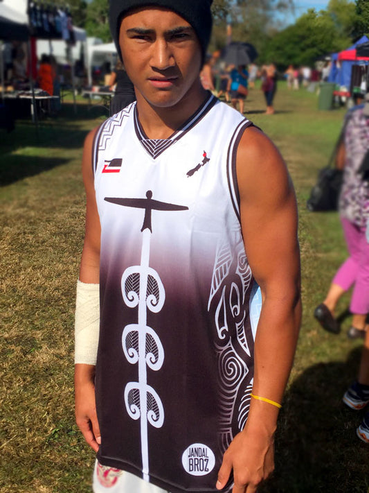 Ngāpuhi Basketball Singlet Ma White Wairua